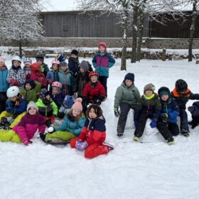 Ab auf den Schlitten! Am Freitag, den 30.1.2026, nutzten die Erstklässler den Neuschnee, um am Schlittenhügel in Nähe des Kurparks zu rodeln. Mit viel Freude und guter Laune sausten sie den Berg hinunter.