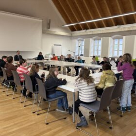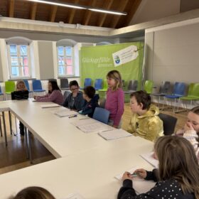 Nun durften wir den Bürgermeister mit Fragen löchern, hatten wir uns doch im Unterricht gründlich darauf vorbereitet. „Welche Aufgaben haben Sie?“ „Wie viele Stunden arbeiten Sie am Tag? Und, und, und.“ Wir erfuhren, dass Herr Beck viel mit Verwaltungsaufgaben zu tun hat. „Beschlüsse nach außen tragen, sich um Zuschüsse kümmern, … Doch das Wichtigste sei für ihn: „Mit Bürgern sprechen und ihnen, so weit wie möglich, zu helfen.“ Deshalb dürfe man den Bürgermeister jederzeit ansprechen – auch auf der Straße etwa. Seine Arbeitszeit beträgt häufig 15 bis 16 Stunden am Tag. Das ist aber unterschiedlich. Sicherlich hat er auch einen freien Tag.