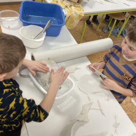 Osterbastelei In allen Klassen wird im Rahmen des Kunstunterrichts und Werken und Gestalten fleißig an einer Osterdekoration gebastelt.