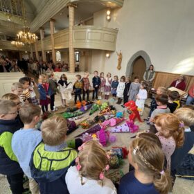 Mit einem fröhlichen Gottesdienst starteten wir ins neue Schuljahr. Im Mittelpunkt stand das Thema „Beschützt sein“. Auf dem Altar lagen viele Dinge, die uns im Alltag schützen – wie ein Sonnenschirm, Schwimmflügel oder ein Fahrradhelm. Sie erinnerten uns daran: Auch Gott beschützt uns!