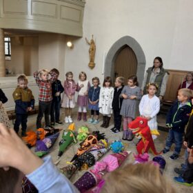 Gemeinsam starteten wir unter Gottes Schutz und Segen in das neue Schuljahr. Dazu durften die Kinder zusammen mit einem Erwachsenen den Segen entgegen nehmen.