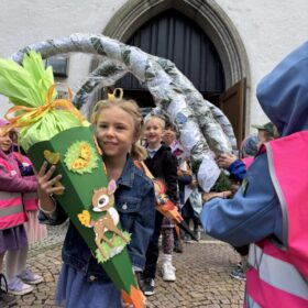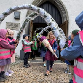 Vor der Kirche warteten die Kindergartenkinder auf die großen ABC- Schützen standen Spalier.
