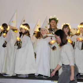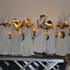 Schweden wurde von der Klasse 1b mit einem Lichtertanz um die Heilige Lucia dargeboten.