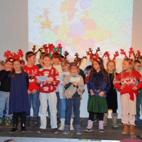 In diesem Jahr wurde unsere Weihnachtsfeier zu einer kleinen Reise durch Europa, die von einem kleinen Stern begleitet wurde. Mit Gedichten, Liedern und Tänzen zeigten die Kinder, wie vielfältig und lebendig Weihnachtstraditionen in anderen europäischen Ländern gefeiert werden. Einzelne Kinder spielten an verschiedenen Instrumenten Weihnachtsstücke vor.