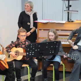 Anschließend nahm die Klasse 1a die Zuhörer mit nach Spanien. Die ABC- Schützen sagen und musizierten zum Lied “Felix navidad”.